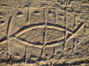 I’m thinking many things in life are like cancer, eating away at us – our body, emotion, mind, and soul – trying to take over and rule our destiny. It can’t – unless we allow it. Instead we can purpose to speak only that which is healing, encouraging, uplifting. And I’ve read how the early Christians had to be careful to whom they spoke, and would begin their greeting or conversation with half the fish sign shown above, often drawn in the sand with their foot, then waiting the response or acknowledgment. They were purposing that their words be identified with Christ. Thanks to my dear friend and her ‘gift’ of insight, this too has been my renewed goal: