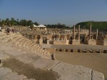 IMG_4427GALILEE TO DEAD SEA -After breakfast at the luxurious hotel (foyer size of our two story home) we drove south to Beit She’an, the largest archeological site in Israel. We were read the passages in the Bible telling us about the battles between the Israelites and the Philistines on nearby Mount Gilboa – a battle ending with a tragedy to the royal house of Saul, but paving the way for the rise of David.