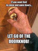 The fourth email was a meme with this message: Are you asking God to open and close doors? Then get your hand off the doorknob!