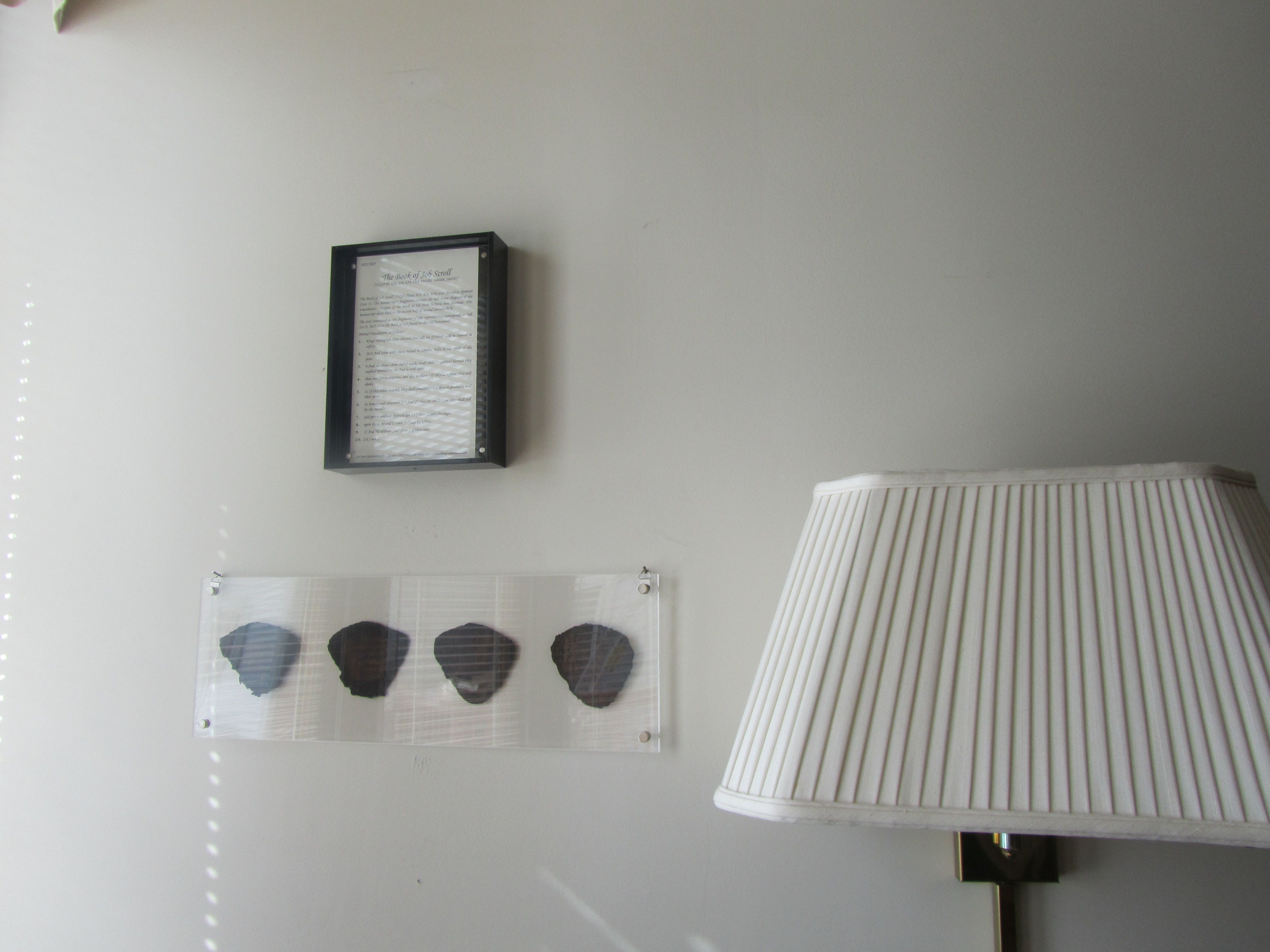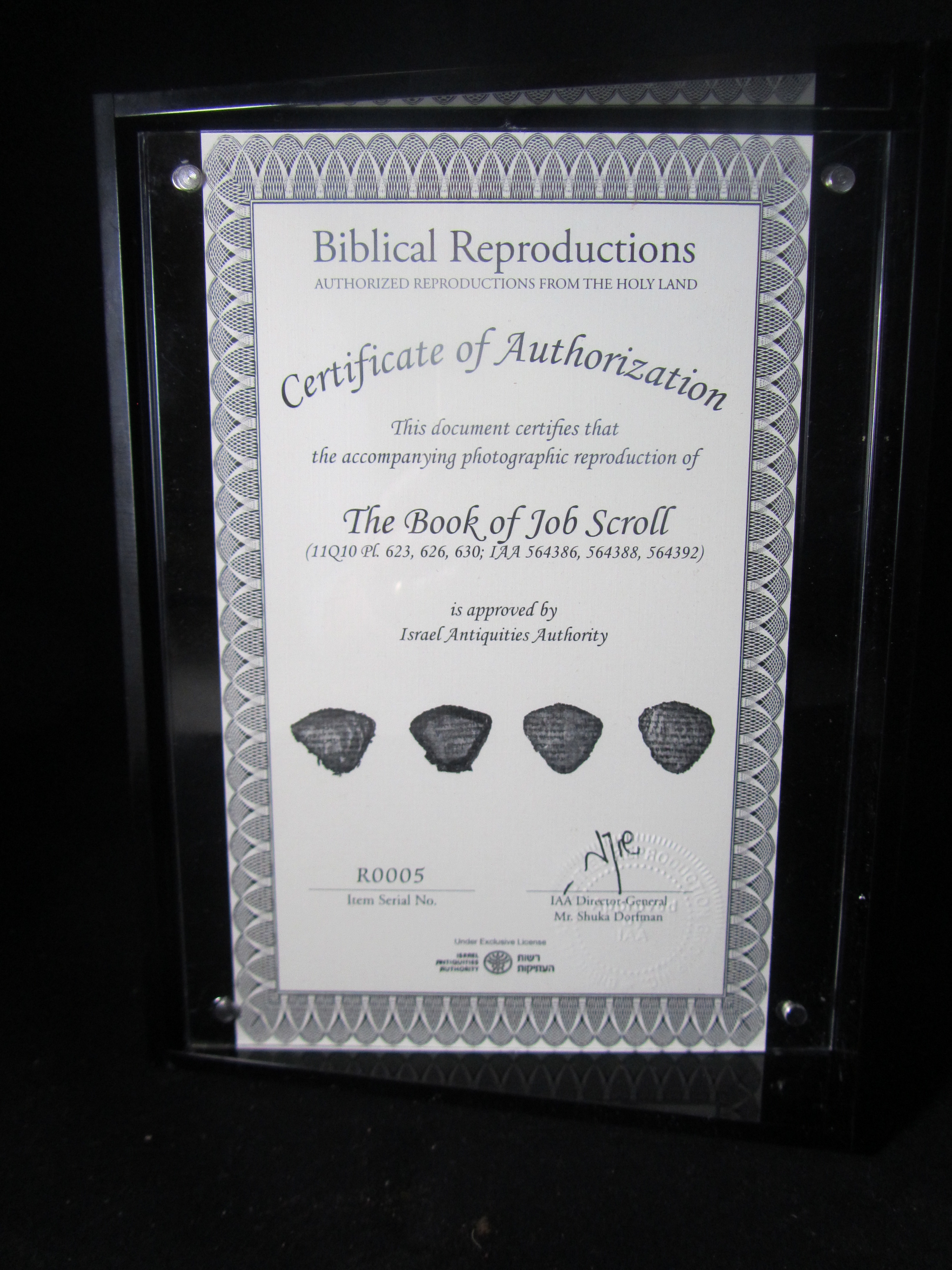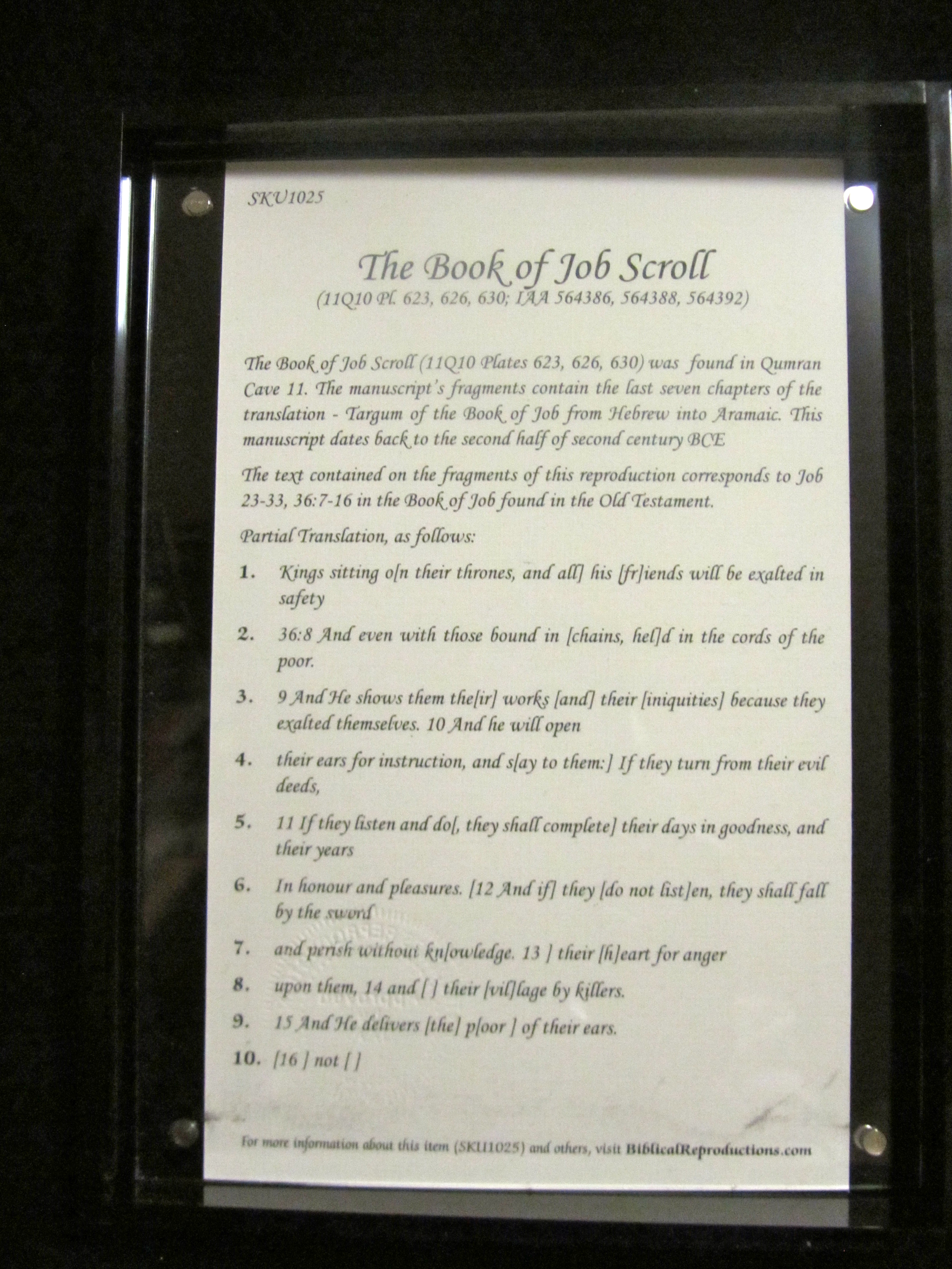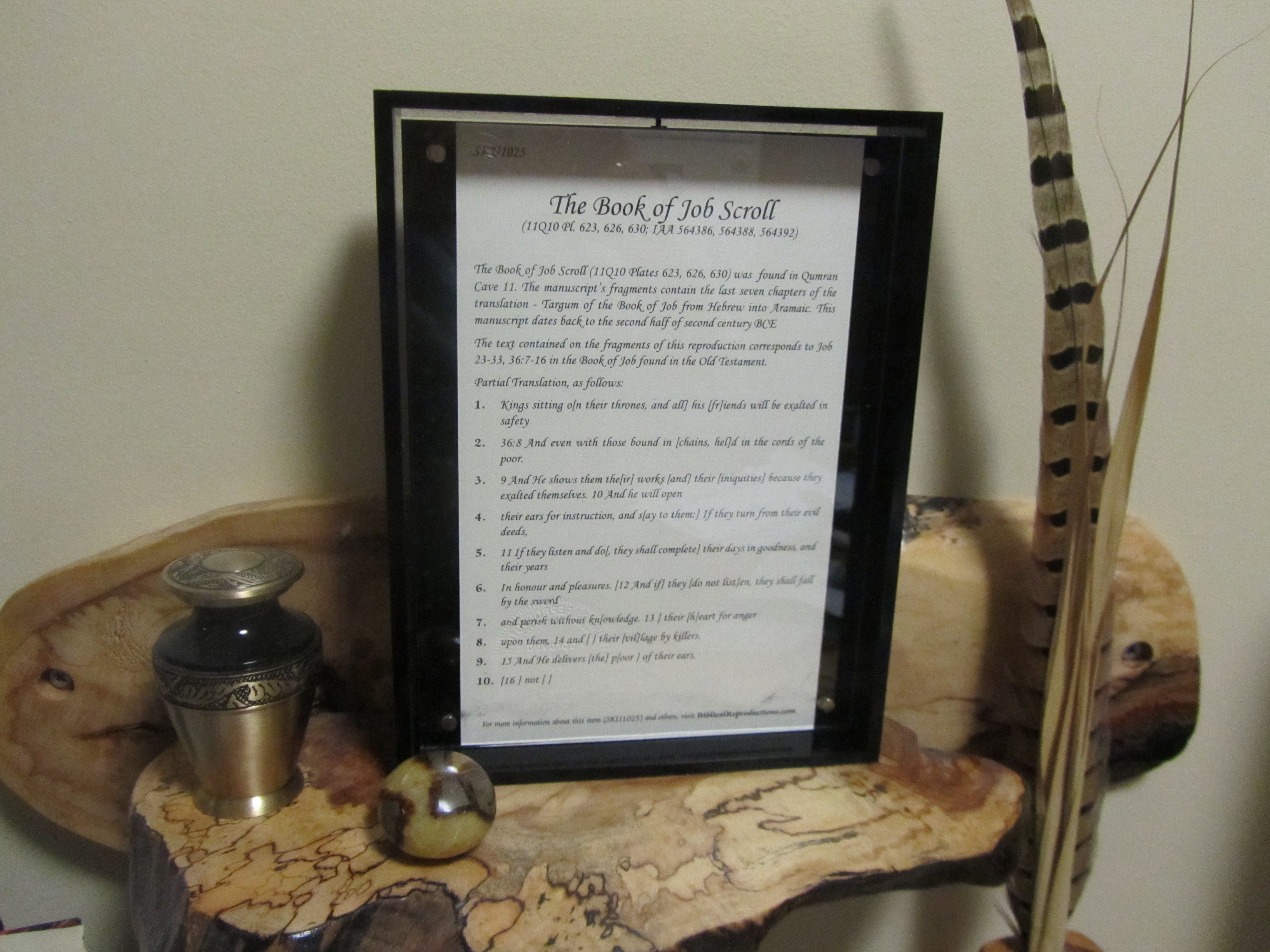 YES! That was my reaction on seeing the shape of the package I received from Biblical Reproductions. The narrow and slim package meant it would be a scroll. I tore into my package like a kid and drew out a long clear acrylic-encased beauty. It was a scroll portion from Job – beauty from ashes.