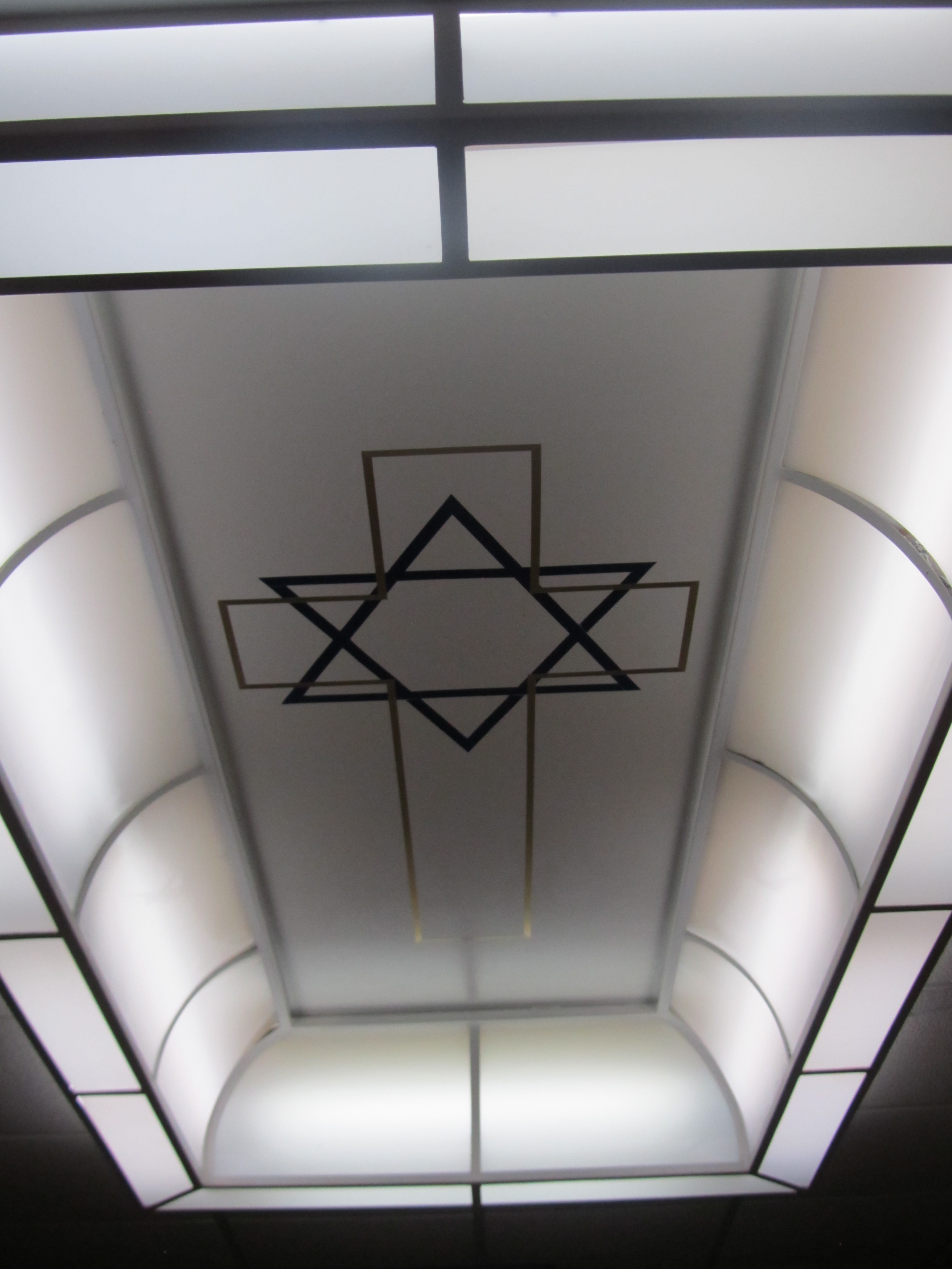 the ceiling above our central cooking island – created so the Cross and the Star of David reflect into our lives. Hebrew prayers and pictures surrounding the island remind us daily to pray for Israel.