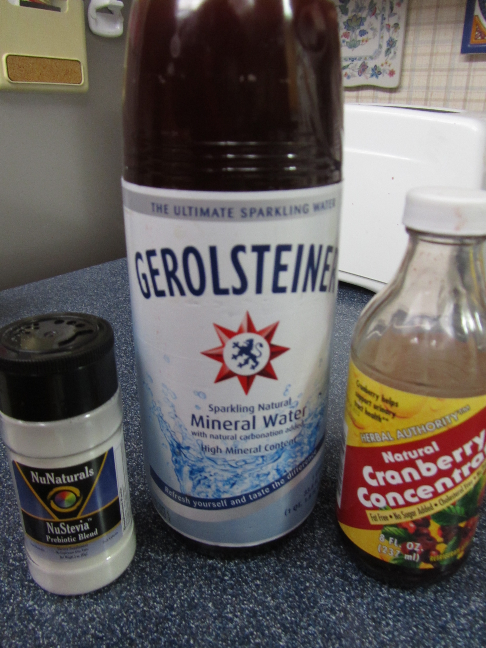 Then poured 4 ounces of the cranberry concentrate into the bottle.