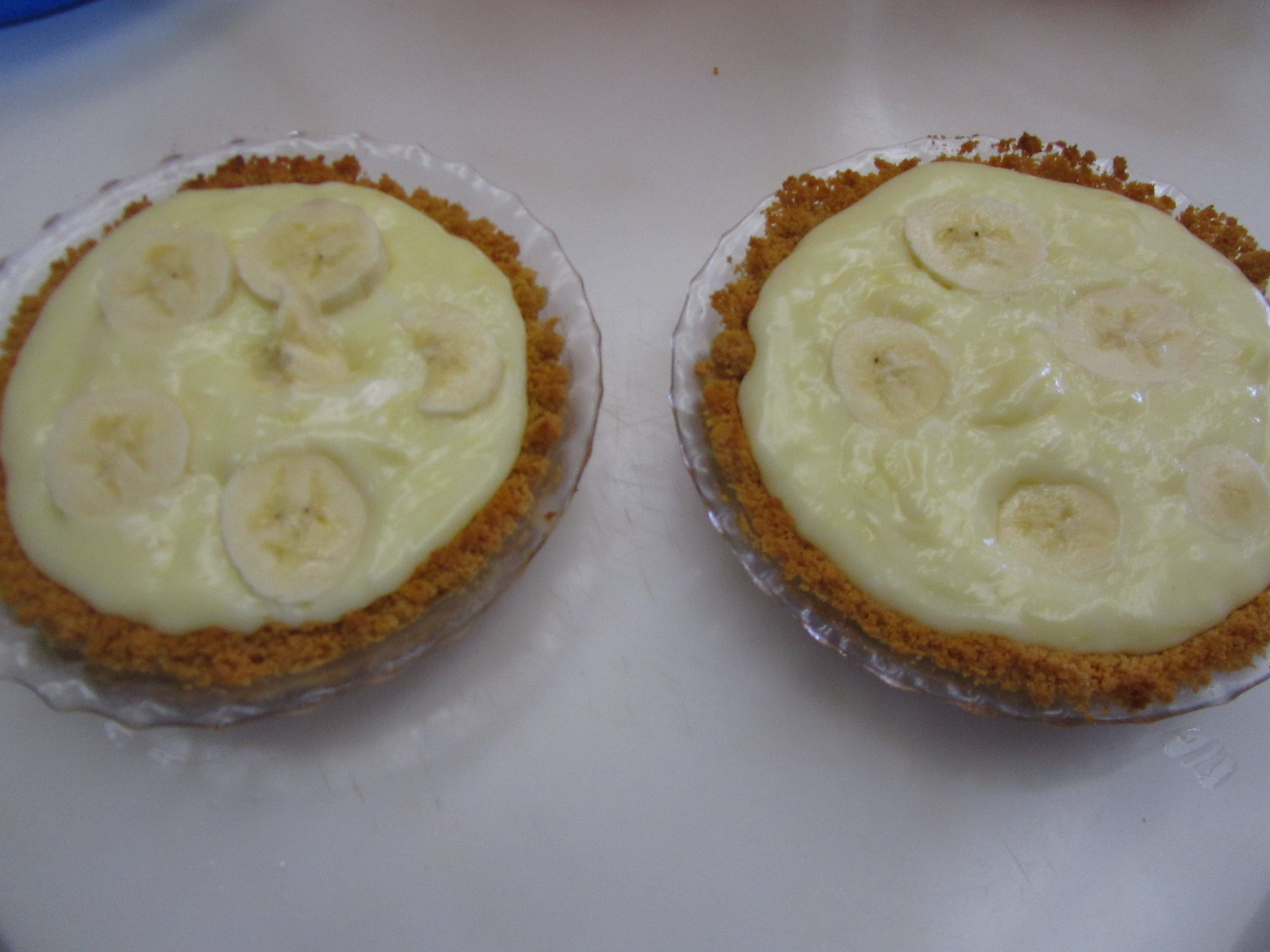 Slice ½ of banana and layer slices on bottom of baked crust.