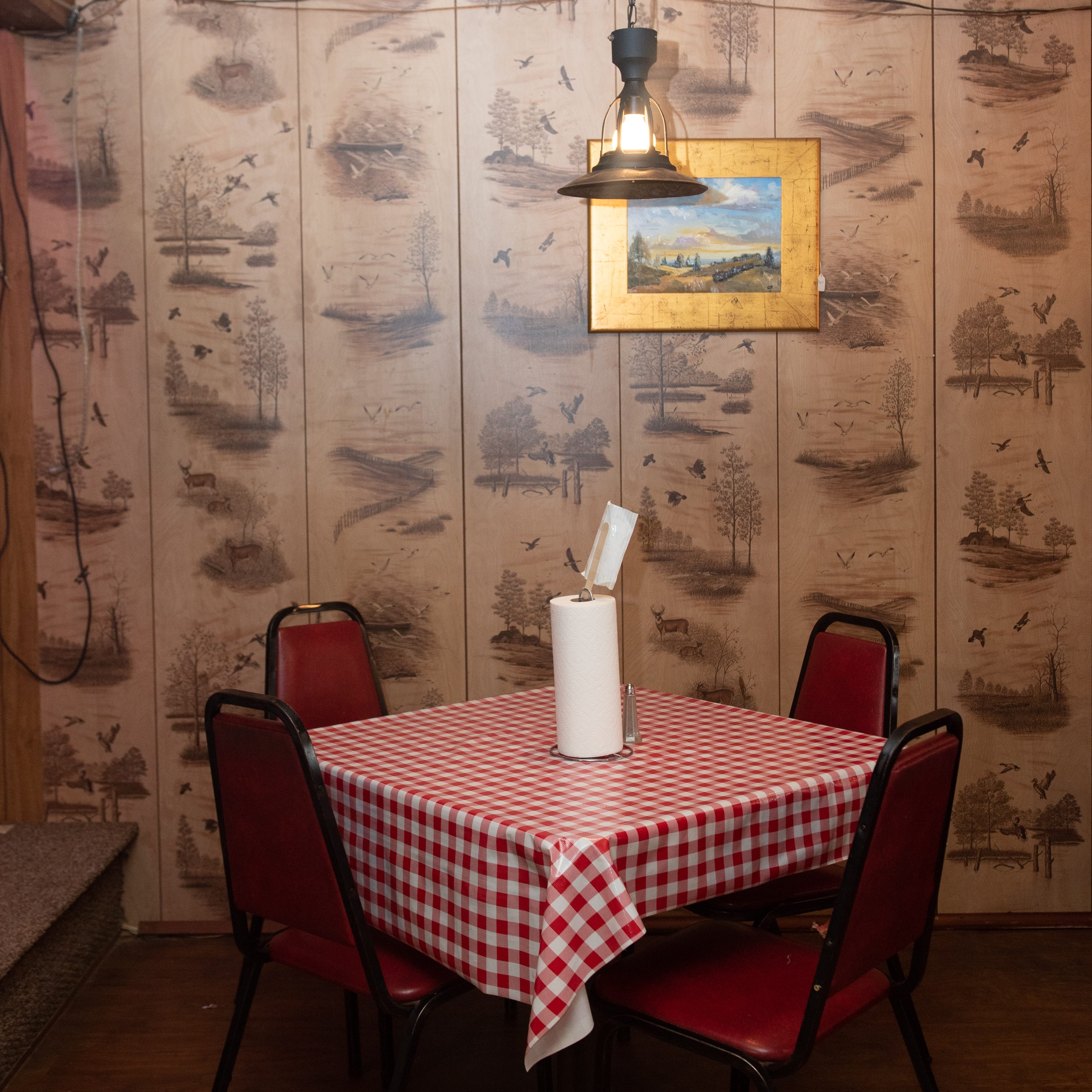 A whispered instruction from behind Daddy’s hand produced a rapidly disappearing waitress, and aroused my curiosity, effectively halting the last catsup-laden French-fry on its way to my mouth. That was the quickest I’d seen her move since we’d arrived. What ever had he said? Eagerly I sat up straighter, meeting his eye and expecting an explanation. “Later,” he said. The single word was spoken quietly, and I sighed impatiently, though the feeling subsided as quickly as it came. His word was commanding, but it was promising too, for Daddy always kept his word, and there was no time to waste. A visit to the diner after a ride to the paper mill was a rare treat and there was much to see and memorize for who knew if we would come again, or when. The sounds of the big men’s boots on the wooden floor, the ching of the big gold cash-register, the sight of neat checkered tablecloths, each topped with a canning jar containing wild flowers, and silver condiment trays with tiny packets of jellies held equal fascination with the clothing and hairstyles of the employees and customers.