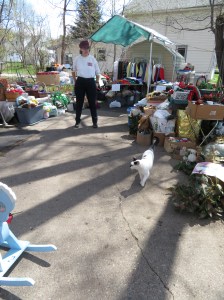 There was an interesting bohemian couple that found Kris’ broad knowledge interesting, so while they continued to chat and try to convince her to buy more of their books, I slipped over to another sale near the car. I’d seen the woman manning the tables go into the house, so it was a perfect opportunity to slip a couple of surprises on her table. As